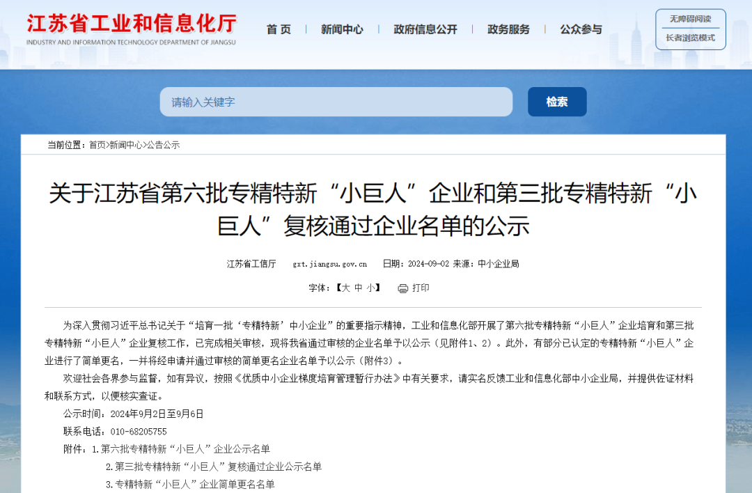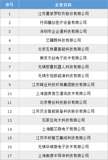 根據(jù)工信部統(tǒng)一部署,江蘇省工信廳于2024年9月2日發(fā)布了《關(guān)于江蘇省第六批專精特新“小巨人”企業(yè)和第三批專精特新“小巨人”復(fù)核通過企業(yè)名單的公示》,其中江蘇曼荼羅軟件股份有限公司、丹陽慧創(chuàng)醫(yī)療設(shè)備有限公司、深圳市企企通科技有限公司等17家創(chuàng)投集團(tuán)被投企業(yè)入選第六批專精特新“小巨人”企業(yè)。